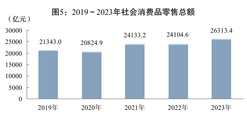 全年社会消费品零售总额26313.4亿元,比上年增长9.2%。