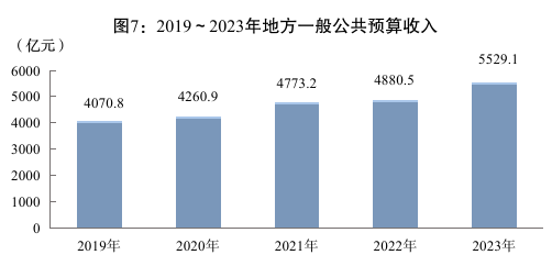 全年地方一般公共预算收入5529.1亿元,比上年增长13.3%,其中,税收收入3700.7亿元,增长17.4%。一般公共预算支出12731.7亿元,增长6.9%。