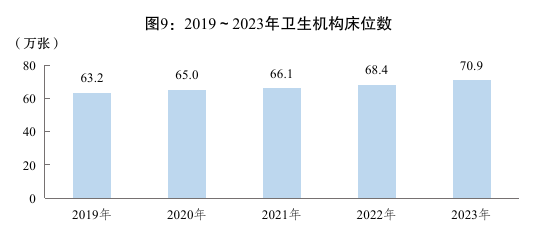 年末全省医疗卫生机构75109个,其中,医院2608个(民营医院1925个),基层医疗卫生机构71581个。医疗卫生机构床位70.9万张,卫生技术人员74.2万人,其中,执业医师23.6万人,执业助理医师4.5万人,注册护士33.5万人。妇幼保健机构201个,执业医师和执业助理医师1.0万人,注册护士1.4万人。乡镇卫生院2762个,执业医师和执业助理医师3.9万人,注册护士3.5万人。