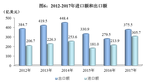 以美元计价,2017年四川实现货物贸易进出口总值681.2亿美元,增长38.2%。其中,出口375.5亿美元,增长34.4%;进口305.7亿美元,增长43.1%
