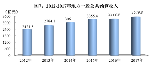 全年地方一般公共预算收入3579.8亿元,比上年增长9.5%,其中税收收入2430.0亿元,增长10.7%。一般公共预算支出8686.1亿元,增长10.8%