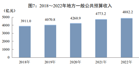 全年地方一般公共预算收入4882.2亿元,比上年同口径增长7.5%,其中,税收收入3151.1亿元,增长4.3%。一般公共预算支出11914.7亿元,增长8.2%。